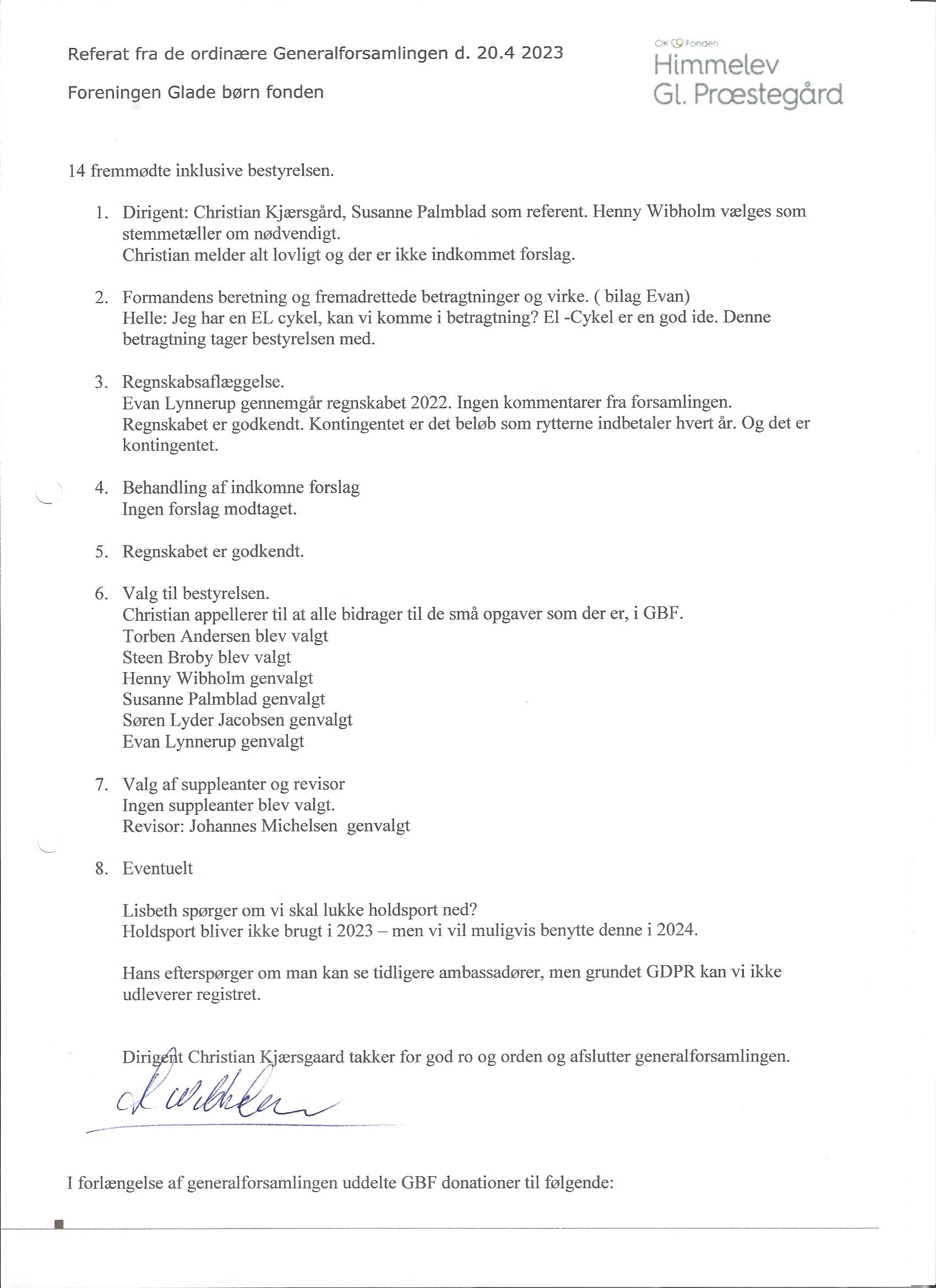 Der afholdes ordinær generalforsamling i Foreningen Glade Børn Fonden, tirsdag den 22. april 2025 kl. 19.00